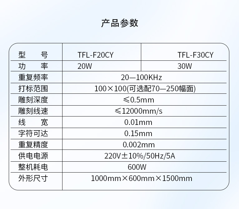 通發激光研發TFL-F20CY激光打標機,金屬材料和塑膠材料都進行打標加工,本激光鐳雕機配置成熟的20W和30W國產光纖激光器,國產振鏡、國產軟件,性價比高,激光打標效果可達進口設備的95%,是節約成本購買設備的信賴之選!