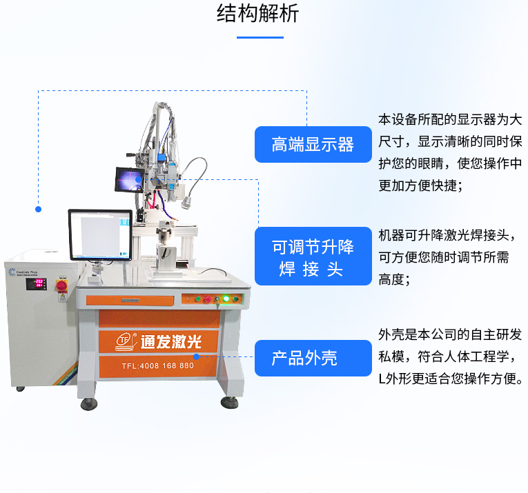 2、強大的PC控制,易于編程、調(diào)試和維護。可完成自動或半自動的點焊、對接焊、疊焊、密封焊,針對復(fù)雜的平面直線、圓弧及任意軌跡的焊接。