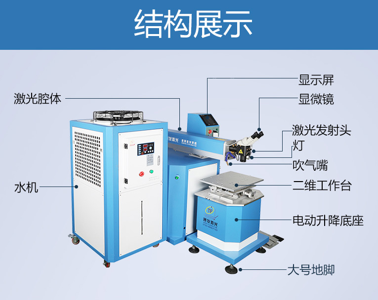 通發激光TFL-400Ⅲ大功率模具激光焊機,比普通激光焊機修復模具效率快1.5-2倍,適合0.3-0.6激光焊絲,大功率更適合修復鈹銅模具、鋁模等較難修復的模具。