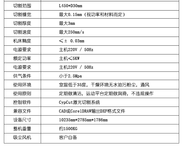 良好的接地:我公司生產(chǎn)的激光設(shè)備均配有自動(dòng)的安全保護(hù)裝置,只有正確、良好的接地才能使之正常運(yùn)作,為了保障您的人身財(cái)產(chǎn)安全,強(qiáng)烈要求客戶為設(shè)備提供良好的接地條件。同時(shí),激光電源、切割控制系統(tǒng)均使用了工業(yè)微處理器進(jìn)行數(shù)字化控制,只有良好的接地,才能保證他們正常穩(wěn)定的工作。