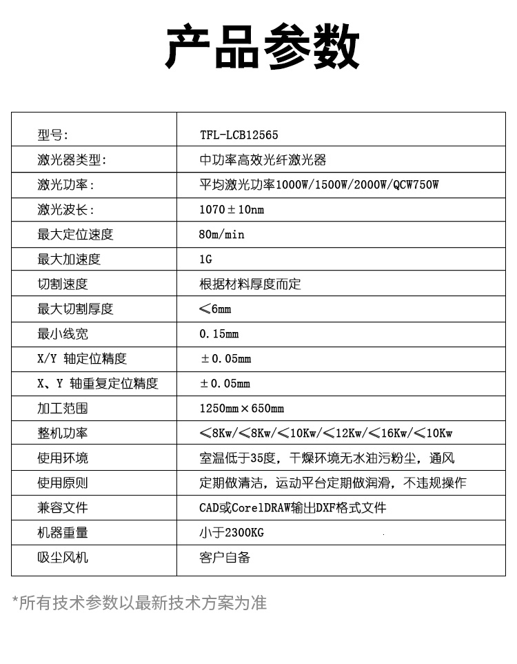 激光器最大功 | 500W 1000W 1500W 2000w 3000W QCW750 |