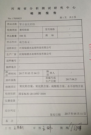 當前的位置: 首頁>榮譽資質>聚合氯化鋁鐵檢測報告